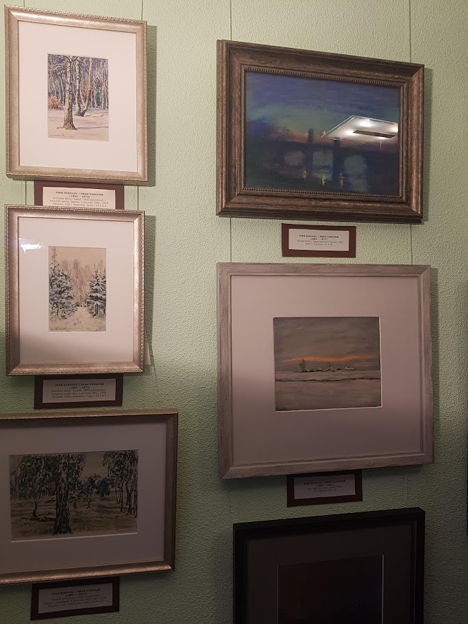 Kuraator Nadezhda Valk tõi esile, et just selle näituse jaoks raamiti kolm eriti ainulaadset teost. Lisaks saab imetleda 1917. aasta maali „Jurjevi vaade“, kus tumedate äärelinna majade tagant kumab udune linnasiluett. Portreegalerii jutustab sooja ja vahetu loo kunstniku perekonnast, sõpradest ja tuttavatest: lapsepõlve naiivsed ilmed, 1950. aastate iseloomulikud patsid ja kõrged soengud, haige abikaase kurblik pilk ning liigutav portree „Hüvastijätt Anfisaga“, millele järgneb kunstniku lapselapse Alja õrn kujutis helesinises kleidis. Väljapanekus on ka kunstniku viimased teosed, loodud vaid mõni kuu enne tema surma 1971. aastal: „Valge sirel“ ja „Õhtune kasesalu“. Elvast jõudis näitusele neli tööd, sealhulgas 1942. aasta „Natüürmort lillede ja õuntega“. Teada oli, et sõja üle on elanud vaid kaks samast aastast pärit teost, kuid käesolev näitus tõi vaatajate ette veel kaks harva nähtud maali.